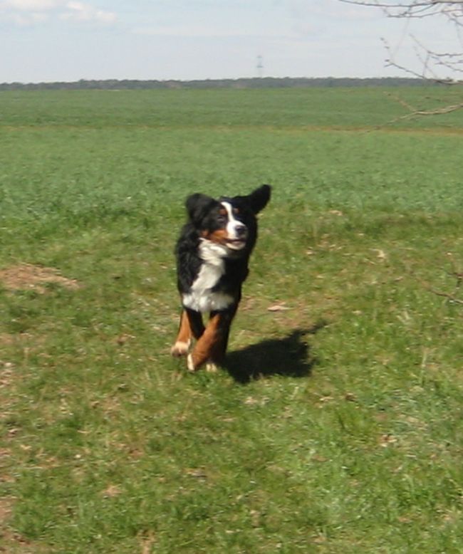Ich habe nun auch einen Freund! Er wohnt gleich nebenan und ist ein Deutsch Wachtelhund. Denny ist fast gleich alt mit mir und auch Mama Tana und Molly mögen ihn sehr. Wenn wir uns auf der Wiese treffen geht aber die Post ab. Da ist unser Wettrennen olympiareif sagte Frauchen. Ich gucke auch immer ganz aufgeregt über den Zaun, wenn wir vorbei laufen. Schließlich muß ich doch wissen, was er so macht. Letztlich hat er bei uns am Zaun geschnüffelt, aber weil wir drei Damen dann so laut waren, hat Herrchen gemeint, das geht nicht so. Jetzt geht er immer ganz schnell bei uns vorbei, aber dabei guckt er immer ganz traurig. Wir machen dann immer schnell ein Date auf unserer Wiese aus. Seit Neuesten schnüffelt er immer an meinem Po herum. Ich finde das interessant! Frauchen meinte oh weh, da können wir aber achtgeben, wenn es soweit ist. Also irgendein Ereignis steht wieder vor der Tür und ich habe keine Ahnung was das sein könnte. Es muß was mit mir und Denny zu tun haben und Frauchen nennt es Flexi(leinen)zeit! Ich bin gespannt!