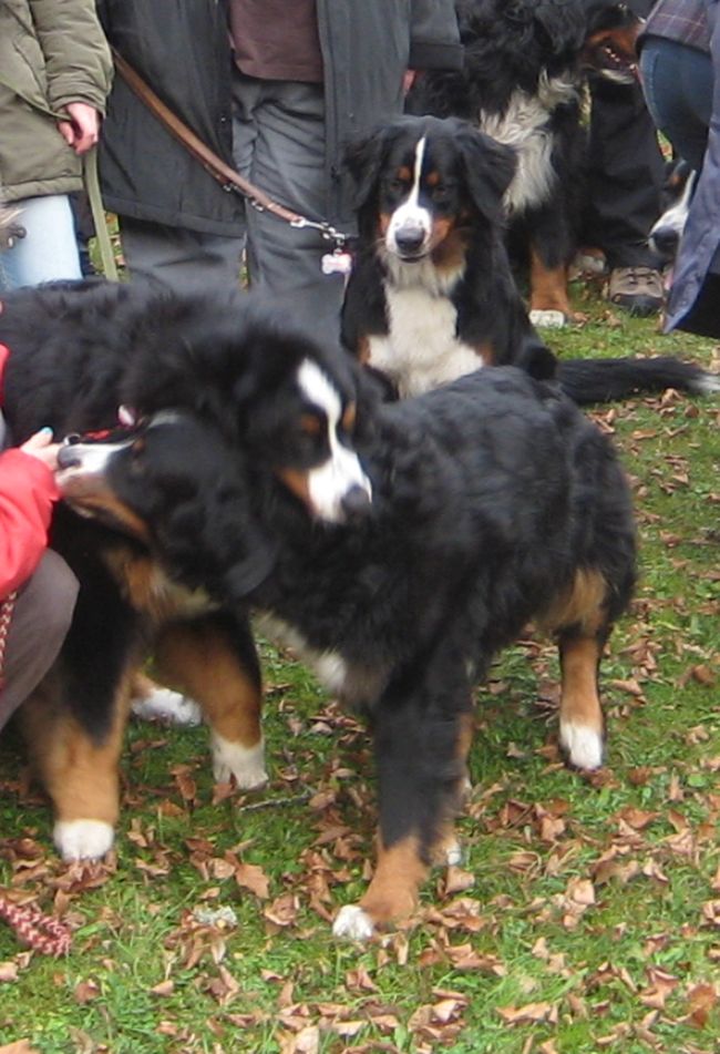 Also wirklich, was hatten wir heute für Spass! Man hat uns mal wieder ins Auto verfrachtet und dann haben wir viele Freunde mit ihren Zweibeinern getroffen. Es gab da auch etliche große Vierbeiner die sie "Pferde" nannten. Und dann ging es los! Wir sind über eine große Wiese in den Wald gelaufen. Und alle Artgenossen durften nach Herzenslust springen und saussen. Im Wald haben dann unsere Zweibeiner erst mal gevespert. Das habe ich ja noch nie gesehen, das im Wald gefuttert wird! Derweil es sich unsere Menschen schmecken ließen, habe ich mit ein paar Bernermännern Bekanntschaft geschlossen. Da gab es einen Carlo und einen Balu, die waren super nett. Mit einem Bernermädchen habe ich im Wald dann Wettrennen gemacht. Die hieß Amy und war auch wirklich super nett. Alle Vierbeiner und ihre Zweibeinerchefs sind dann los maschiert und haben einen tollen Spaziergang zusammen gemacht. Ich war danach ziemlich außer Puste, weil ich so viel gerannt bin. Einmal habe ich mich auch im Wald kurz versteckt und Frauchen war etwas nervös. Damit sie wegen mir keinen Stress bekommt, bin ich aber gleich, naja nach dem 3-4 Rufen, also fast sofort wieder angesausst.