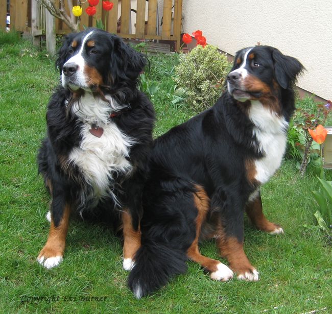 Heute war es mal wieder so weit. Es hieß früh morgens aufstehen und schnell noch mal Fell gebürstet. Dann haben sie Brötchen geschmiert und unsere Wasserflasche gefüllt und Leckerle eingepackt. Schon ging es ab ins Auto und los. Der große Hundeplatz war wieder sehr schön und für uns prima gerichtet. Evi und Frauchen haben gejammert, weil es für beide ziemlich kalt war auf ihren Sitzen, die auch im Auto verstaut waren. Ich fand es ganz prima, ich liebe kühles Wetter! Unsere ganze große Berner-Family war auch da. Also erst mal meine beiden Großmütter, One-Kira und Melli vom Fichta. Dann Papa Alessio und Darina und Calina, meine Schwestern. Alle sind da dann wieder im Ring geflitzt und wurden von einem "Richter" bewertet. Ein bißchen kenne ich mich da jetzt schon aus! Ich mußte etwas warten und durfte dann auch in den Ring. Ich bin so "zwischen", weil ich für "offen" noch zu jung bin und wurde mit Schwester Darina, die auch "zwischen" ist als "vorzüglich" eingeteilt. Unsere große Schwester Calina ist schon "offen" und hat mit ihrer Linda ein "vorzüglich 4" gemacht! Aber sie ist ja auch schon etwas älter, dachte ich mir und konnte schon länger üben. Ich werde das sicher auch noch schaffen. Unser Papa hat auch ein "Vorzüglich" bekommen und wir alle haben uns dann noch in einer "Nachzuchtgruppe" auf Papa präsentiert. Da waren dann auch noch unsere Halbgeschwister dabei. Der Richter meinte, Papas Frauchen kann ganz schön stolz sein, auf uns ALLE! Und dann kam dann noch die B.C.D-Zuchtgruppe der Schweizer Franken. Das waren Bavaria-meine Molly, ich und Calina und wir haben einen 2. Platz gemacht. Ich finde alle zusammen waren wir wirklich super und meine Leute können sehr zufrieden sein. Jetzt brauche ich nur noch meine Kuschelecke, ein paar Streicheleinheiten und einen ruhigen Abend,