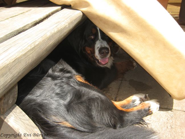 Meiner Molly war gestern ziemlich schlecht! Da ist ihr Nachts, ohne das Frauchen es bemerkte, ein Mallheur passiert. Frauchen sagte morgens, "Gott sei Dank" es hat nur die Kudde erwischt!! Da war ich aber anderer Meinung!! Denn in die Kudde schleppe ich so ziemlich alles,woran mein Herz hängt. Meine Spielsachen, meine Leckerle und zum Relaxen ist sie auch bestens geeignet!! Also Sie haben meinen Lieblingsplatz zum Reinigen raus in den Garten geschleppt. Da war er dann voll Wasser und ich habe schon überlegt, ob sie nicht auch als Schwimmplatz zu gebrauchen wäre. Nee sagten sie, die muß nur wieder trocknen!!! Ich musste also wieder mal höllisch aufpassen, das mir die Kudde nicht geklaut wird. Dabei habe ich bemerkt, das sie auch als Sonnensegel bestens zu gebrauchen ist. Und vor der Haustüre wäre sie auch nicht schlecht gewesen, Denn dort auf den Stufen könnte man auch eine weiche Unterlage gebrauchen! Aber Frauchen hat dann wieder anders gehandelt und sie wieder ins Wohnzimmer verfrachtet. Da werde ich ein ernsteres Gespräch führen müssen, damit noch eine zweite ins Haus kommt!!!