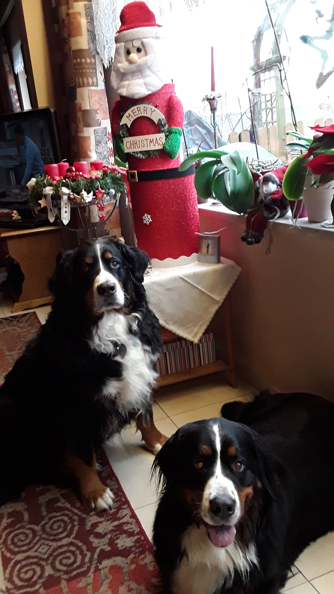 Das kalte Lüftchen macht mich richtig fit!! So daß Frauchen und Evi wieder lachen und Herrchen die Stirn runzelt, weil ich wieder eine wilde Hummel bin. Wie der Wind so schnell rase ich über die Felder und dabei soll ich mir ein Beispiel an Mama nehmen. Die läuft sehr artig neben unseren Leuten her. Sie hat aber auch einen wichtigen Job. Frauchen verliert nämlich immer ihren Handschuh. Ich glaube fast, sie macht das absichtlich. Uns schickt sie dann immer zum Suchen und jammert, ich habe etwas verloren. Wenn wir, naja. meist Mama Tana, ihn zurückbringen, wir finden den Schuh für ihre Hände nämlich immer, gibt es Leckerle. Letztlich hing einer an einem Ast. Der hat nicht nach Frauchen gerochen und sie hat gesagt, "das ist nicht meiner" und hat in wieder zurück gehängt. Da kann sich nun ein anderer Vierbeiner mühen!. Zuhause sitzen derzeit überall so rote Kerle herum und ich darf sie nicht beachten! Sie nennen sie Weihnachtsmänner! Ich finde sie ziemlich unnütz, nur so zum Herumsitzen!! Dann gibt es überall Zweige, mit Kugeln und Zapfen dran! Ich dachte schon, wenigstens etwas Neues zum herum schmeißen! Aber nein, auch die sind verboten!! Letztlich hat Herrchen einen größeren Baum in einen Eimer mit Wasser gestellt. Ich schaue immer nach, ob der noch da ist und bin gespannt, was sie damit wieder vorhaben. Nachmittags machen wir es uns zur Zeit immer gemütlich, sie trinken Kaffee, oder Tee, es gibt Kekse und wir haben einen großen Knochen zum Kauen.
