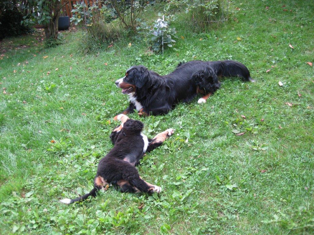 Einige Pfützchen hat er ihnen schon in die Wohnung gesetzt. Da kann sich Frauchen nun sputen. Oma Tana hat auch am liebsten ihre Ruhe. Für eine alte Dame war das auch ganz schön viel Stress mit immer "Full House". Aber das kleine Scheisserchen kann sich bei Frauchen schon allerhand leisten. Wenn bei mir mal das Temperament durchgeht, oder Oma Tana mal Fressi aus der Küche klaut, da ist "Land unter". Nur mein Elias, tztztz,.. Narrenfreiheit...