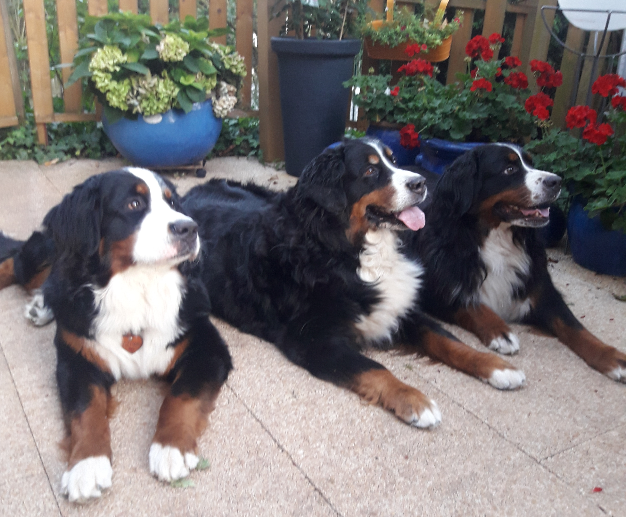 Was sind wir erschrocken, Mama, die Evi und ich. Ganz gemütlich sind wir unsere Runde gegangen und haben halt ein bissle so geschnüffelt und unsere Zeitung gelesen, was so los war im Dorf. Dabei haben wir etwas abseits auch so ein Loch im Boden untersucht. Plötzlich sind da jede Menge Wespen heraus gekommen und haben uns überfallen. Sie sind überall in unserem Fell herum gekrabbelt. Naja die Evi war schon ein bissle feig, die hat sich nämlich uns nicht anzufassen getraut. Wir sind ganz schnell im Turbotempo nach Hause gesaust. Da hat sie uns dann gebürstet und noch so Krabbelstechtiere aus unseren Fell geholt. Schlimmeres ist nicht passiert, aber seit dem hab ich Respekt, wenn etwas um meine Nase summt. Heute bin ich ratzfatz von der Terrasse ins Wohnzimmer gespurtet, weil so ein Stechtier wieder auf meine Nase wollte. Nee nee, nicht mit mir, ich lass mich nicht stechen. Am Nachmittag durfte ich dann mit meinen Zweibeinern in einen Biergarten. Dort haben wir Verwandschaft getroffen. 2 Tanten über Papa Fritz verwandt und 2 Mädels über Mama Dalessia verwandt. Oh ja, eine hübscher als die andere und eine Tante hat einen Duft versprüht, da bekommt man als Junge ganz weiche Knie. Weil ich sehr anständig war, durfte ich neben liegen und ein bissle schön tun mit ihnen. Zum Glück war es unter den Bäumen schön kühl und ich hatte meinen Schreck schnell vergessen.