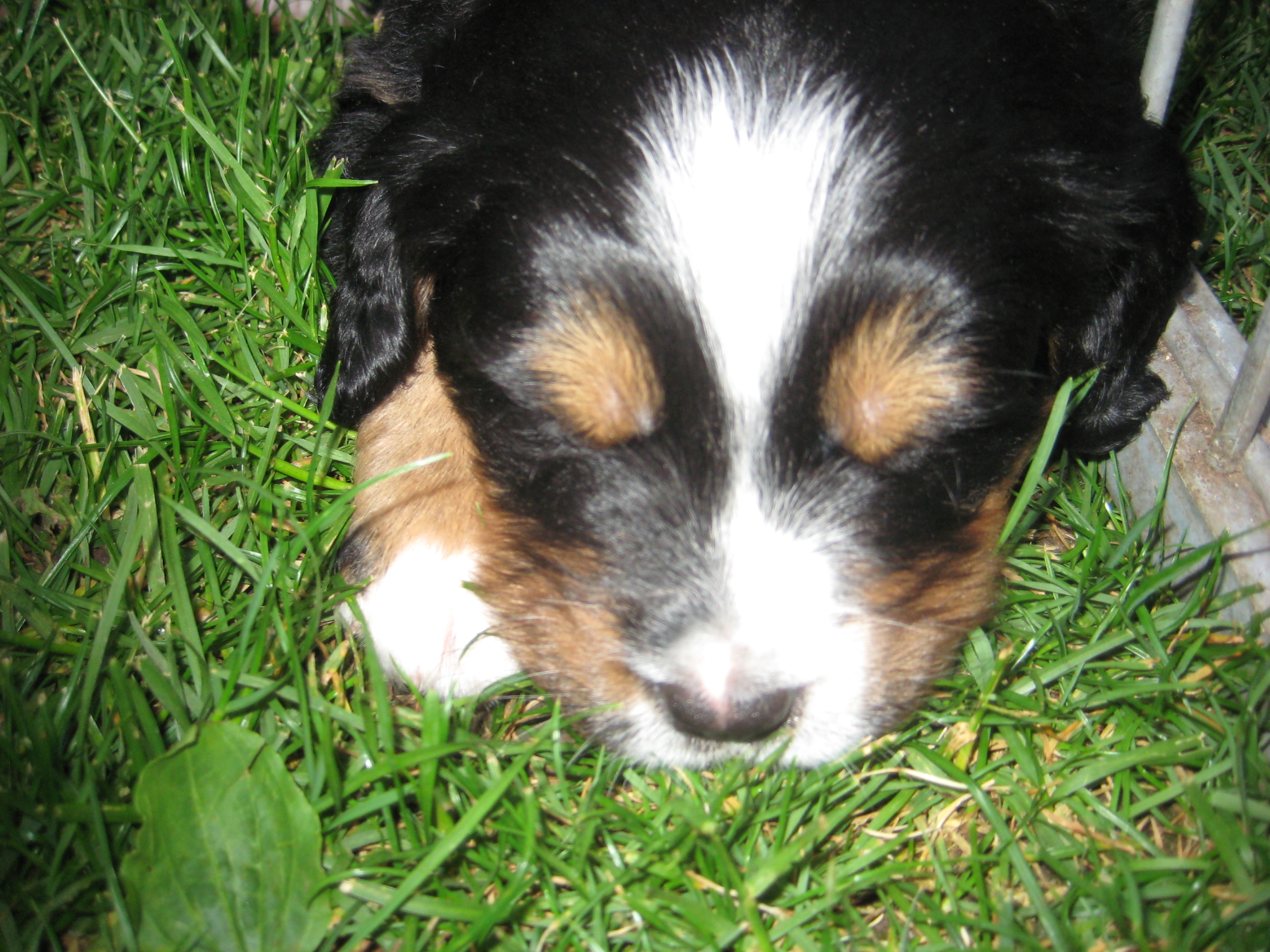 Die Mühe hat sich gelohnt, die Kids können manierlich aus der Welpenschüssel essen. Evi musste sie nach dem Futter nicht abrubbeln. Mich brauchen sie nur zum Reinigen des Napfes. Ich weiß nun nicht so recht, ob das mir gefällt. Denn ich habe bemerkt, sie kürzen auch meine Portion. Je mehr die kleinen Zwerge etwas Anderes bekommen, um so kleiner wird meine Mahlzeit. Aber wenn ich mich ins Gras lege, kommen sie alle angestapft zum Kuscheln und auch zum Nuckeln. Ganz früh, Morgens, wenn Evi noch schläft, gehe ich selbstständig zu den Kleinen. Da lege ich mich in die Kudde, alle um mich herum, und wir genießen unsere Zeit. Und meine Kinder lassen sich die Milch aus der Milchbar schmecken. Na ja, schon klar, alle haben nicht an der Bar Platz. Und manchmal stapeln sie sich übereinander, nur um bei mir zu sein. Frauchen meinte mal, wir haben kleine "Bergsteiger". Denn sie krabbeln auch über meinen Rücken. Ich bin dann aber seeeehr zufrieden und ganz stolz auf meine Rasselbande