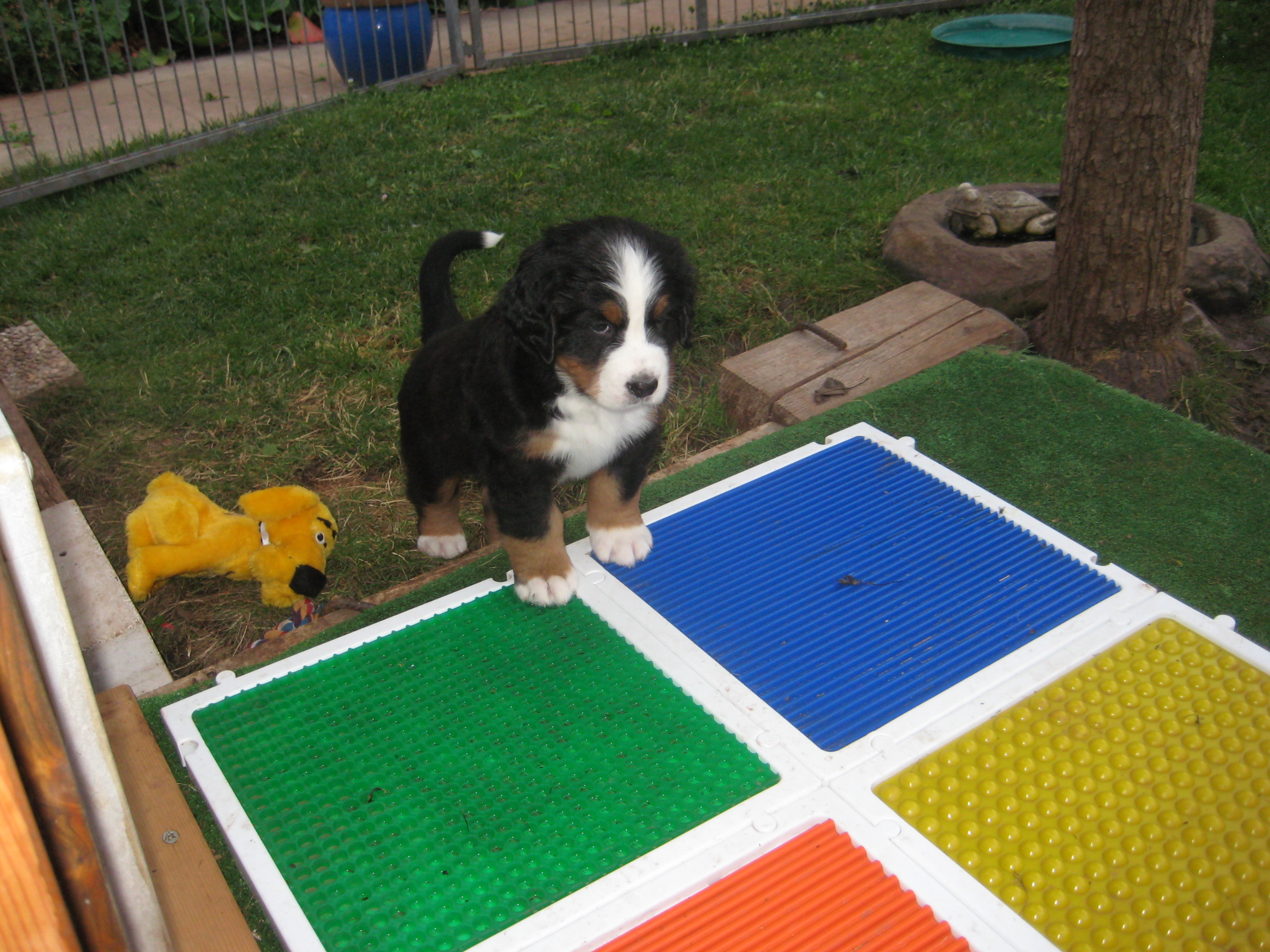 Gestern hatte unsere Menschen Uroma Geburtstag. Sie ist 90 Jahre alt geworden.Frauchen meinte das ist schon ein besonderer Geburtstag und dehalb hatte sie ganz viel zu tun. Damit ich nicht alleine mit meiner Rasselbande bin, hat sie uns das Frauchen von meinem Papa Alessio bestellt. Die ist immer unsere Hilfe in Notfällen: Naja, ich bin ja kein Notfall, aber so ein lieber Zweibeiner im richtigen Moment zur Stelle, ist schon toll. Sie hat Papa Alessio mitgebracht und noch einen Zweibeiner und so haben wir den Tag zusammen locker gemanagt. Meine Zwerge kennen Papas Frauchen ja schon gut, sie hat sie ja auch mit ins Leben befördert und diesmal war sie zum Füttern und Kraulen und Spielen zur Stelle. Papa Alessio war etwas aufgeregt, weil mit soooo vielen Enkelkindern hat er bestimmt nicht gerechnet. Das hat sich aber schnell gegeben und so waren wir den ganzen Tag "in Familie"! Frauchen war den ganzen Tag mit der Uri beschäftigt und am Abend kam noch Musik. Da hat ein Chor, so sagt man dazu, gespielt und meine Kids konnten mal nebenan etwas Anderes erleben. Ach ja und nun können sie auch verschiedene Bodenbeläge kennenlernen, denn die Evi hat so bunte Dinger bereitgelegt, die sie nun mit verschiedenen Mustern überqueren können. Das nennen sie "Lernen fürs Leben".