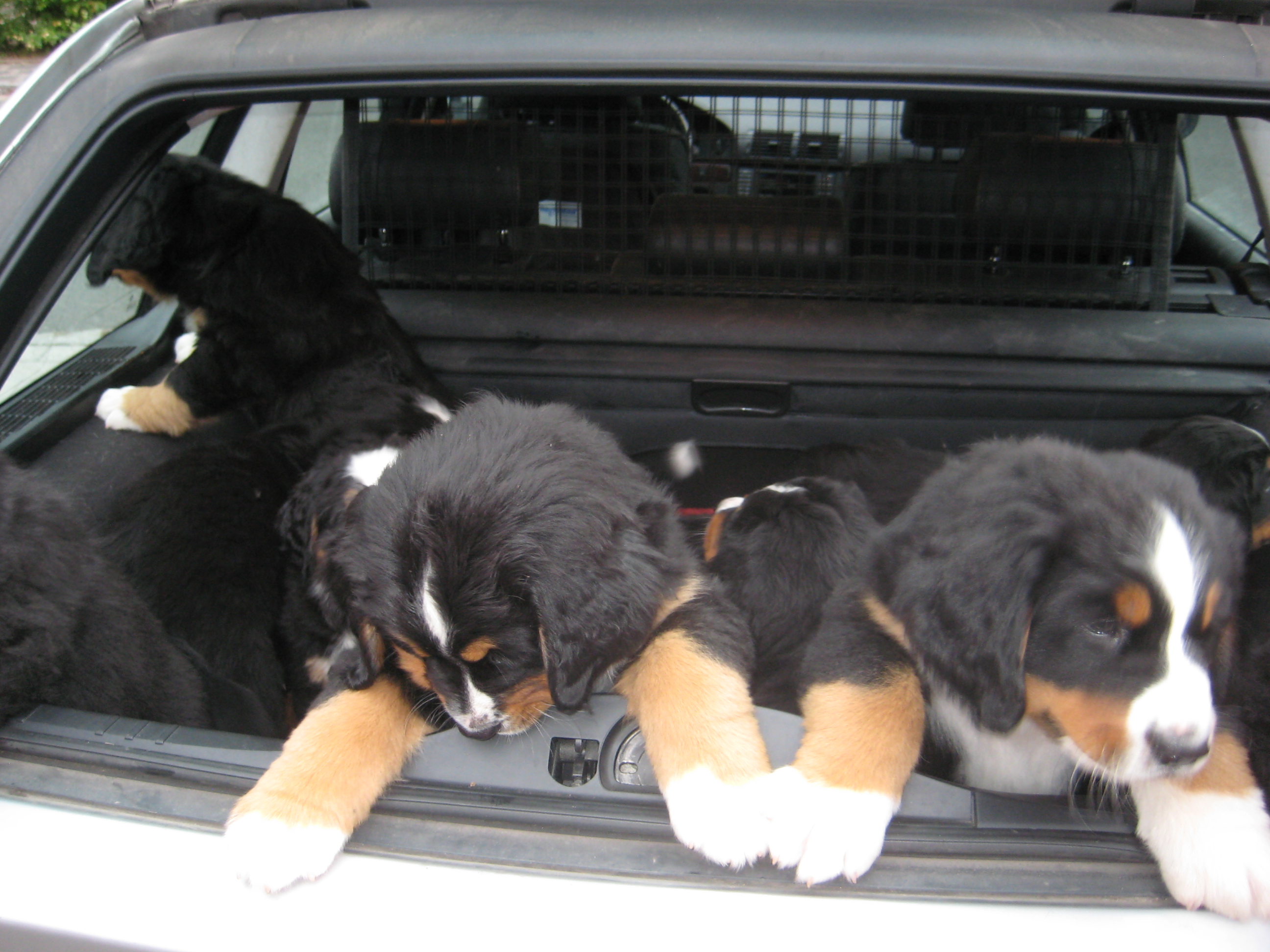 Heute Abend gab es große Aufregung bei meinen Kindern. Sie wurden alle in Evis Auto verfrachtet, ob sie auch alle darin Platz haben. Denn nächste Woche steht eine Fahrt zu unserem Doc an. Die Kleinen müssen geimpft und gechippt werden. Außerdem muß Autofahren geübt werden. Also als alle im Auto waren, ging das Konzert los. Na hoffentlich kommt jetzt nicht die Verkehrspolizei sagte da Evi. Das Geschrei hat man sicher bis in das nächste Dorf gehört. Aber es hilft nix, das müssen sie gewöhnen, meinte auch Frauchen. Also wurde eine Runde gefahren und Evi hat super die Ruhe bewahrt. Aber dann waren sie sehr froh, als sie wieder im Welpengarten saßen. Viel ausgemacht hat es ihnen aber scheinbar nicht, meinten dann alle. Denn sofort sind sie in ihre Ballkiste gesprungen und haben ein bisschen Rambazamba gemacht. Überhaupt war das Spiel, nach dem heißen Tag heute, am Abend dann besonders lustig.