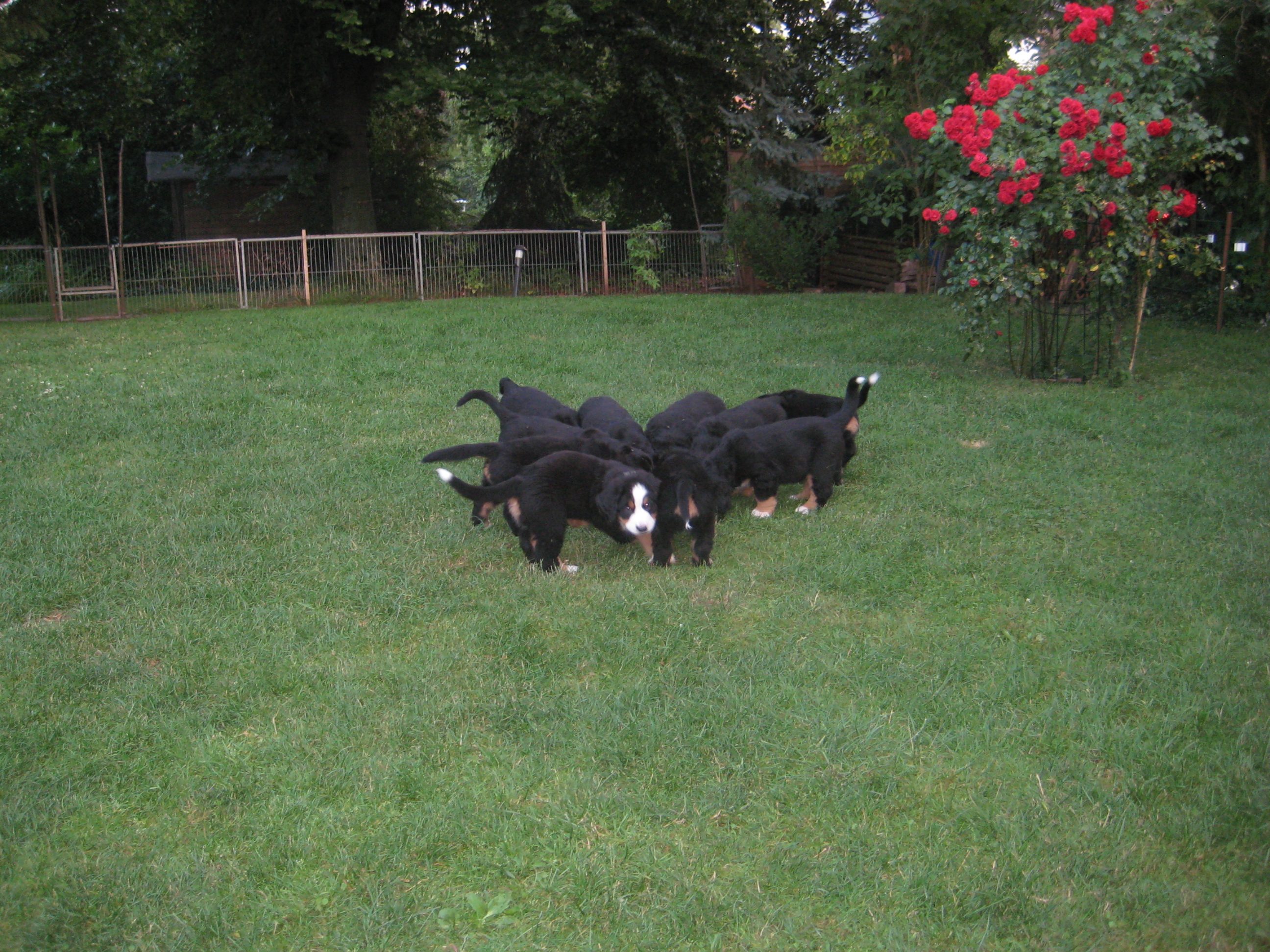Nach unserem Impftermin hatte Frauchen gestern einen Ruhetag verordnet. Meine Kleinen haben aber trotzdem nicht mehr geschlafen und waren alle putzmunter. Aber meinte Frauchen, lieber mal vorsorgen...Dafür hatten die Zwerge heute ganz viel Besuch von den Adoptiveltern, denn nun dauert es nicht mehr lange und sie ziehen in die weite Welt. Dann wird es sehr leer werden in unserem Haus. Aber Frauchen hat mir schon erzählt, das Elias bei mir bleibt. Da bin ich aber wirklich froh, und Frauchen erst recht. Damit ist unser Trio wieder vollständig und bei uns gibt es endlich wieder einen Bernermann. Evi freut sich auch darüber. Denn da gab es mal einen Archimedes bei uns, der war mein Onkel und super lieb. Hoffentlich wird mein Elias auch so ein toller Bernermann.