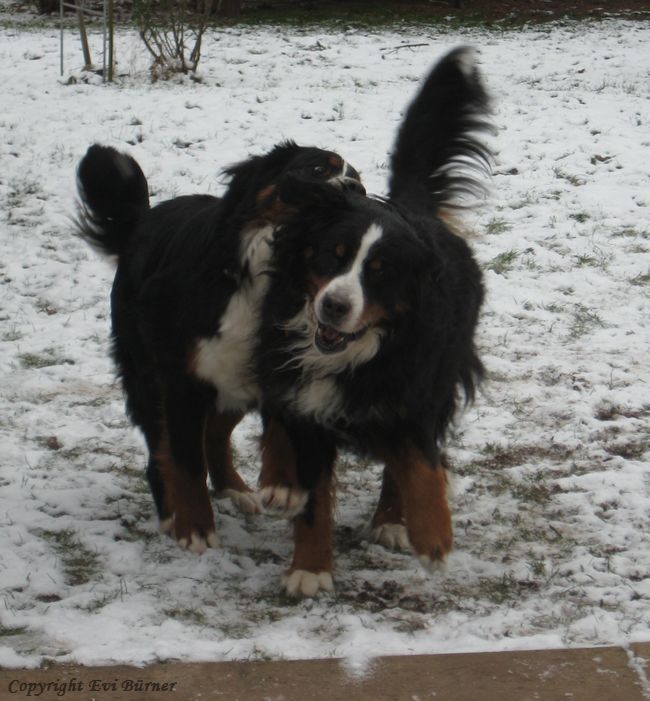Auch Molly, mit ihren 10 1/2 Jahren hat noch jede Menge Spass mit Sia im Schnee