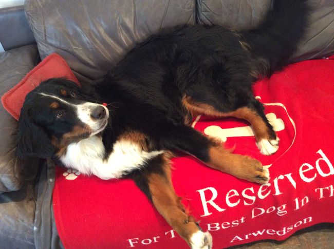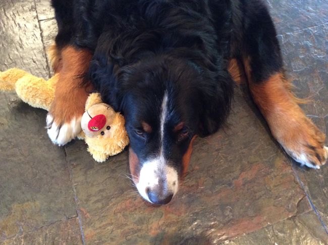 Geburtstagskind Lotte mit ihrem Lieblingsspielzeug. Grüsse an alle Geschwister und die ganze Familie Bürner mit Mama und Tante.